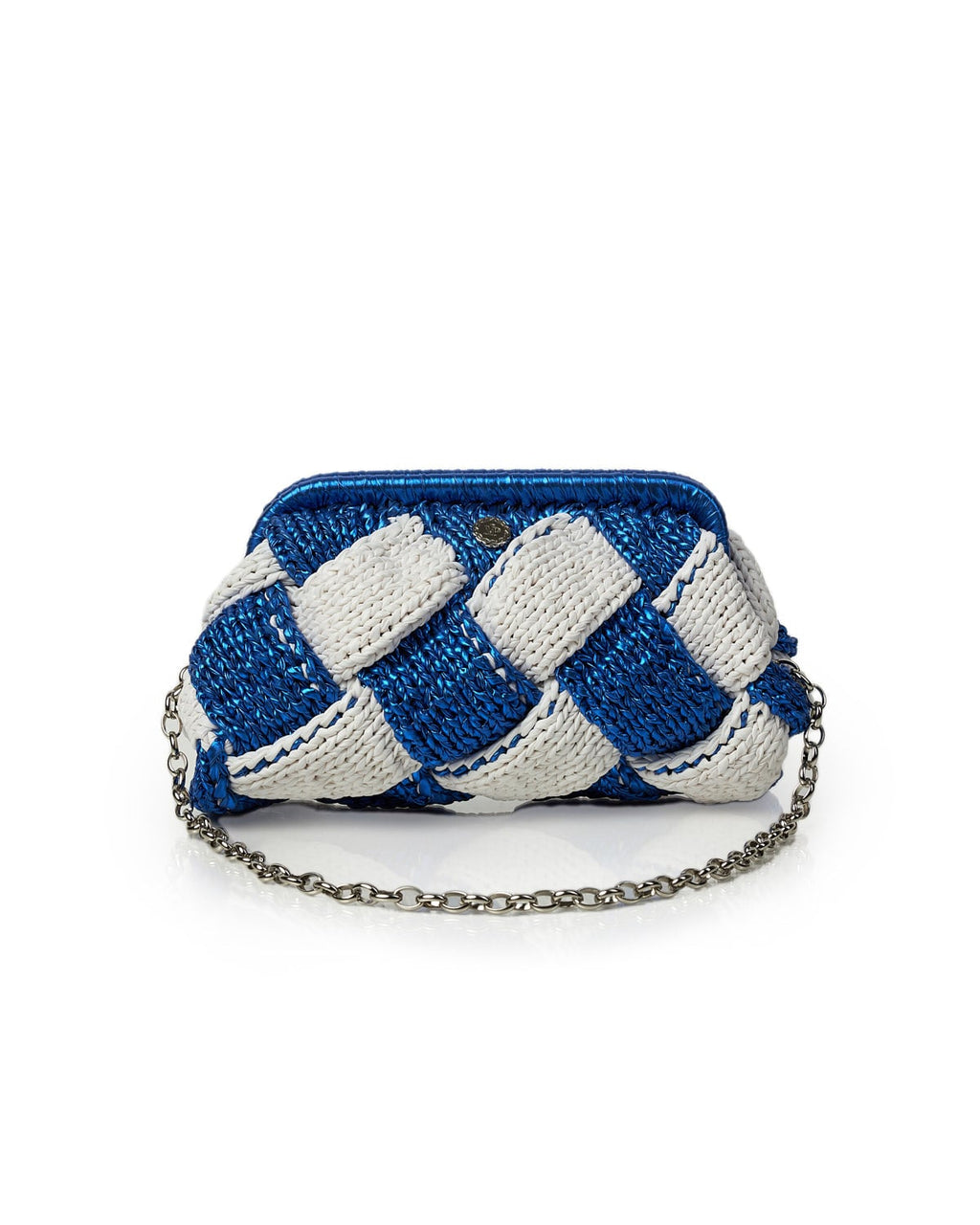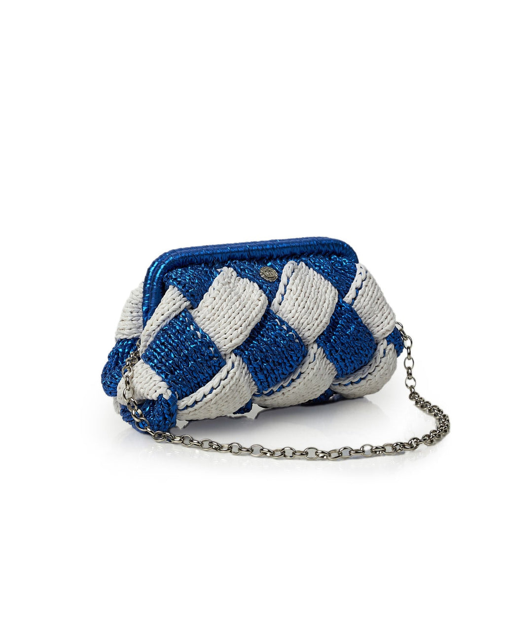 Miss Polyplexi -Pisa (Hellenic) Metallic White and Blue Crochet shoulder bag