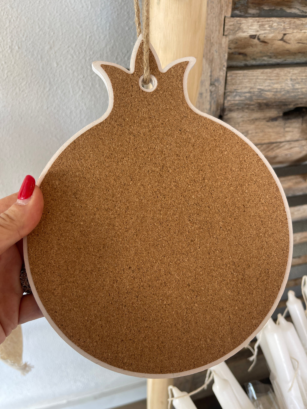 Καλή Ανάσταση Easter Trivet/wall plaque in the shape of a white Pomegranate to display in your kitchen or on your table. Perfect for serving hot or cold items on or hang on your kitchen wall. Comes with hanging string.