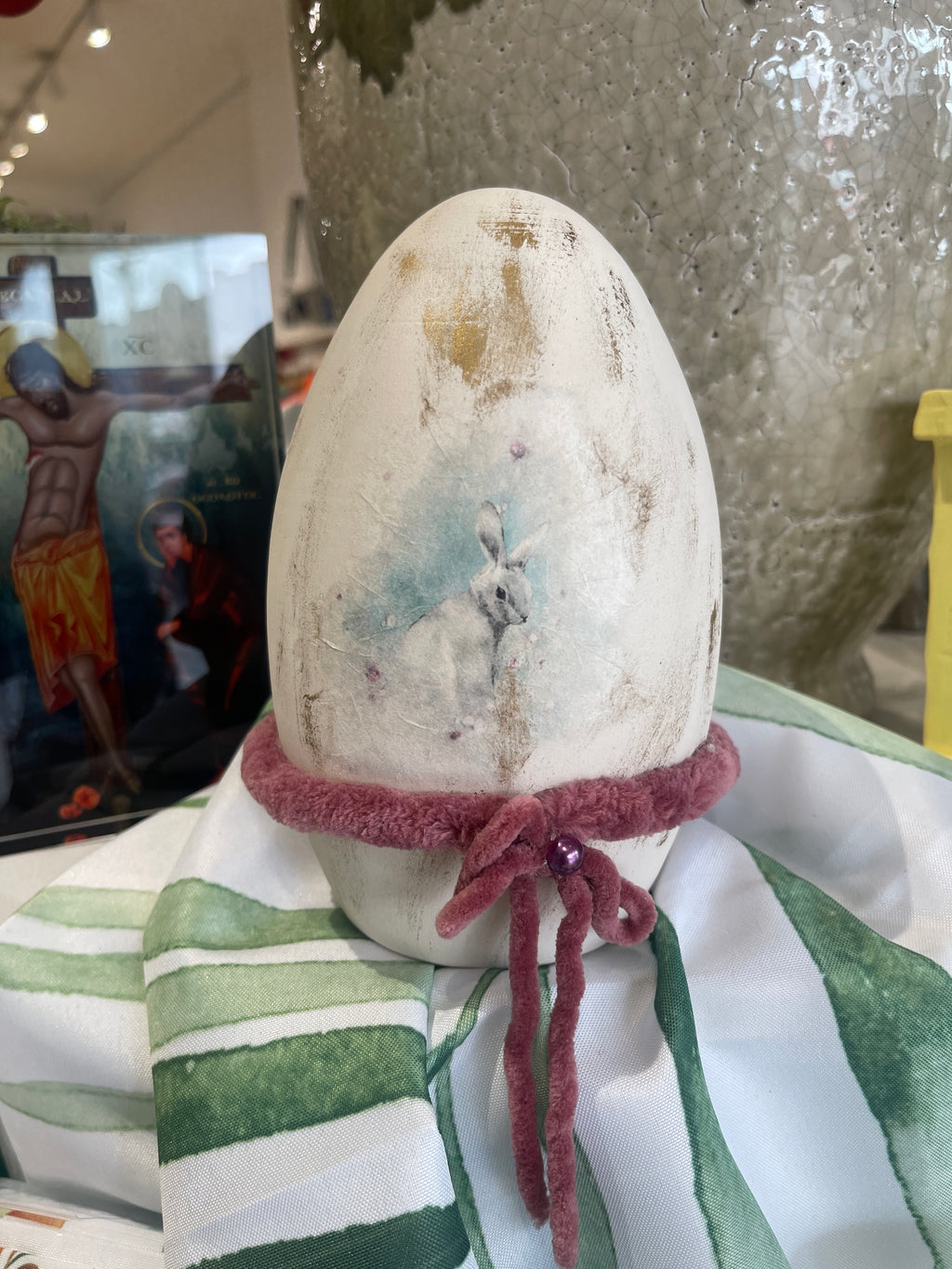 Handmade Ceramic Decoupage Rabbit Greek Easter Egg