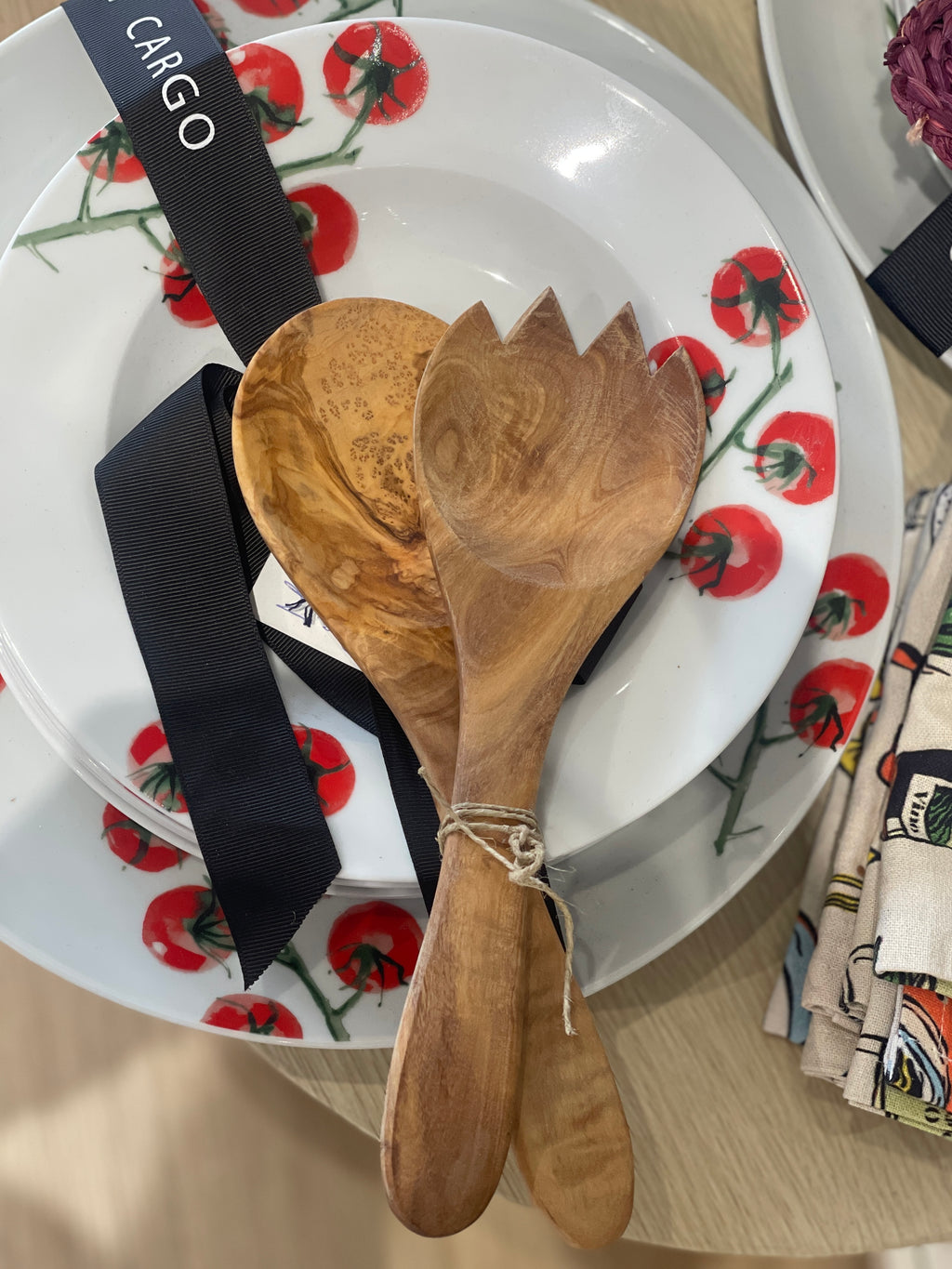 Bring a touch of Crete into your home with this lovely set of Olive Wood Salad Servers. Each one unique. Carved from Olive wood.